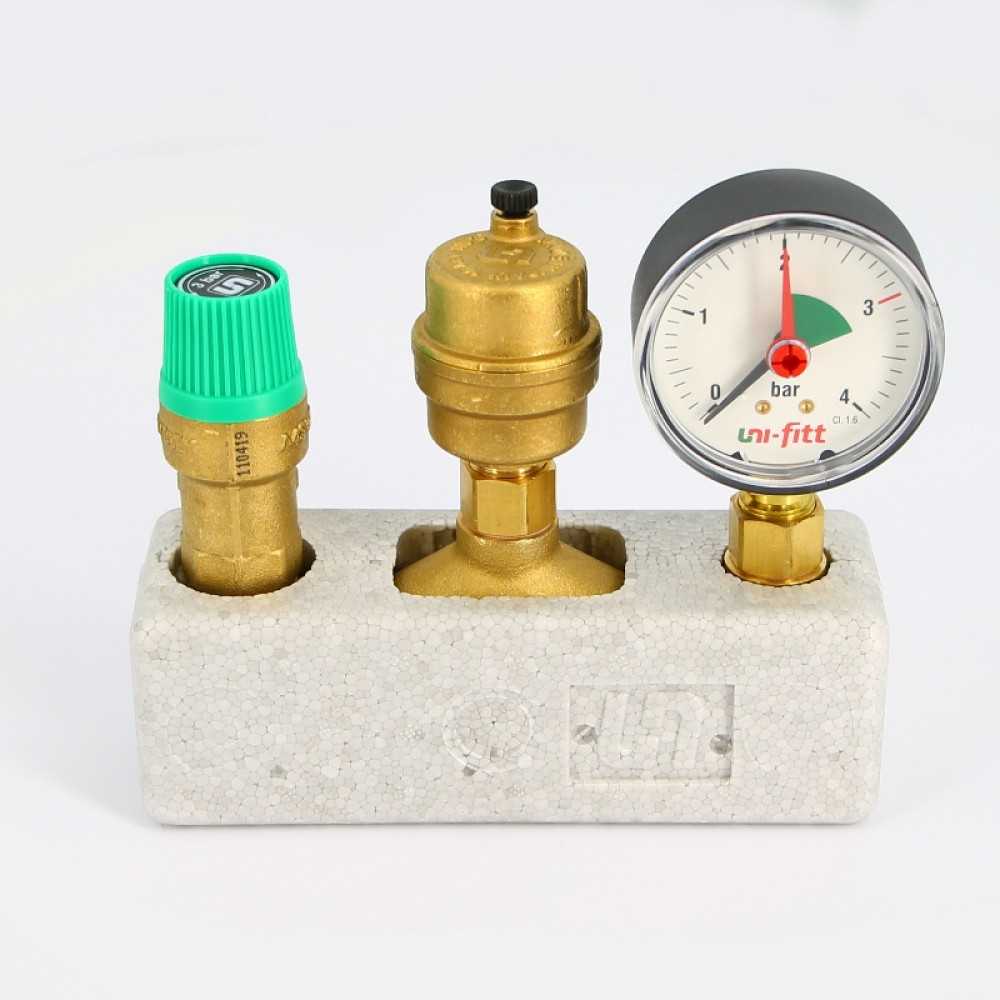 Гр. безопасности котла до 50 кВт, 1", 3 бар, теплоизоляция, латунь 57209G634141